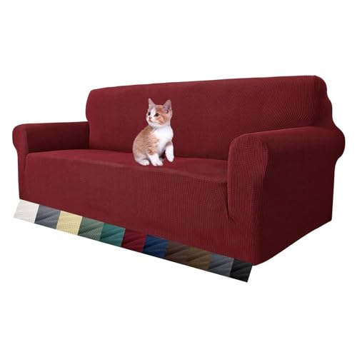 MAXIJIN Housse de canapé Extensible pour canapé 3 Places, 1 pièce Housses de canapé universelles Salon Jacquard Meubles Protecteur Chiens Pet Friendly Fitted Couch Housse (3 Places, Vin Rouge)