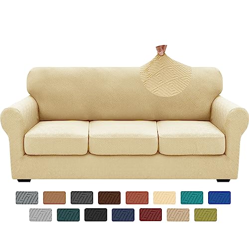 MAXIJIN Housse de canapé Extensible pour canapé 3 Places, 1 pièce Housses de canapé universelles Salon Jacquard Meubles Protecteur Chiens Pet Friendly Fitted Couch Housse (3 Places, Beige)