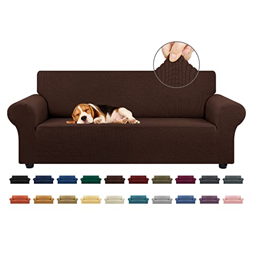 MAXIJIN Housse de canapé Extensible pour canapé 3 Places, 1 pièce Housses de canapé universelles Salon Jacquard Meubles Protecteur Chiens Pet Friendly Fitted Couch Housse (3 Places, Marron)