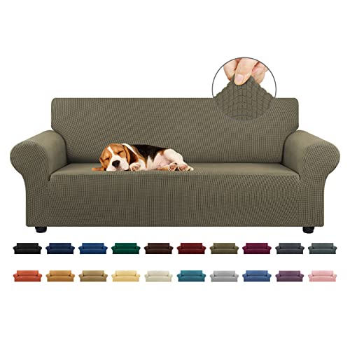 KEKUOU Housse de Sofa Extensible pour canapé 3 Places (200,7 à 238,8 cm), avec Base élastique – Jacquard à Petits Carreaux – pour Enfant, Chien (Taille L, Kaki)