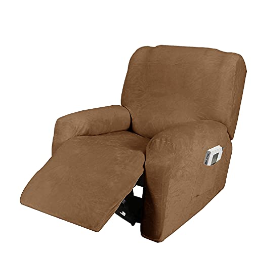 Housse de Fauteuil Inclinable Relax en Velours - Extensible, Lavable, pour Massage et Maison - Protecteur 1 Place (4 Pièces), Marron Clair