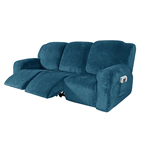 Housse de Fauteuil Inclinable Relax, Housse de Fauteuil Extensible en Velours, Housse de Fauteuil de Massage Lavable à la Maison, Protecteur de Fauteuil Inclinable (3 Place(8pièces), Bleu)