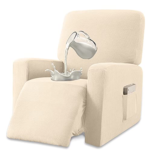 TAIXINT 4 Pièce Housse De Fauteuil Inclinable, Doux Antidérapante avec Poche Latérale Housse Fauteuil Relax Electrique, Spandex Tissu Housse De Canapé (Blanche)