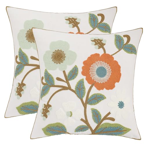 Tosleo Housse de Coussin Fleur 45 x 45 cm Fleurs Oranges Décoratif Taie d'oreiller pour Canapé Salon Chambre Chaise Jardin Maison Fauteuil Décoration 2 Pièces