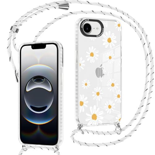 Yoedge Coque avec Cordon pour iPhone 16e/SE 4/SE 2025, Aesthetic Motif Fleur Étui Collier Tour de Cou Lanière Corde Lanyard Case, Transparente Mince Silicone Antichoc Housse pour iPhone 16e 6,1",01