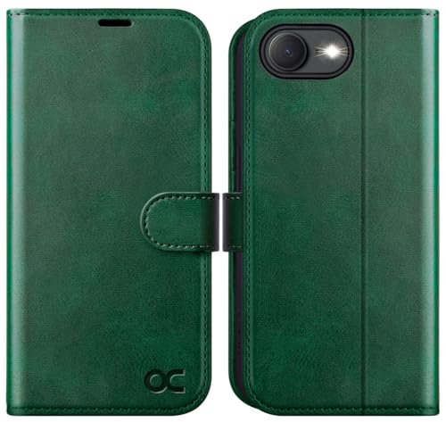 OCASE Coque pour iPhone 16e, Antichoc TPU Housse iPhone 16e Etui en Cuir PU Portefeuille, RFID Blocage, Béquille, Fentes pour Cartes, Protection Coque pour iPhone 16e - Vert Foncé