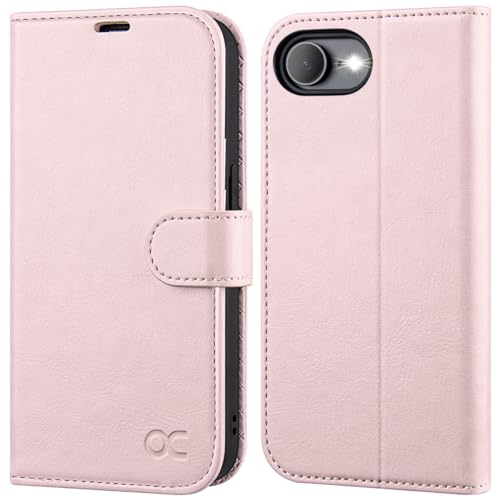 OCASE Coque pour iPhone 16e, Antichoc TPU Housse iPhone 16e Etui en Cuir PU Portefeuille, RFID Blocage, Béquille, Fentes pour Cartes, Protection Coque pour iPhone 16e - Rose