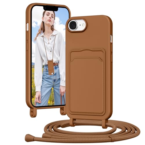 Vauki Coque pour iPhone 16E avec Cordon, Collier pour Étui en Silicone avec Cartes Tour de Cou Lanière Corde, Portable, Réglable, Amovible, Antichoc Bumper Housse pour iPhone 16E Chaine, Caramel