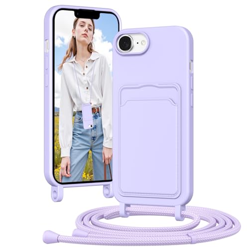 Vauki Coque pour iPhone 16E avec Cordon, Collier pour Étui en Silicone avec Cartes Tour de Cou Lanière Corde, Portable, Réglable, Amovible, Antichoc Bumper Housse pour iPhone 16E Chaine, Violet