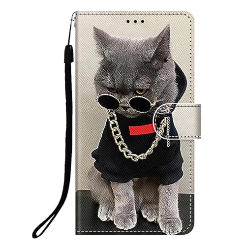 DiaryTown Coque pour iPhone 16e Magnétique Fentes de Cartes Protection Cover Multifonction Antichoc Silicone Housse iPhone 16e 2025 Etui en Cuir PU Portefeuille Flip Case - Chat Cool