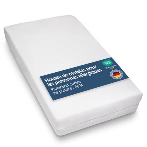 Welldora | Housse de Matelas Anti Acarien de Première Qualité | Protège Matelas Anti Allergies Testé| Housse avec Fermeture Éclair | Linge de Lit pour Personnes Allergiques (90x200x20cm)