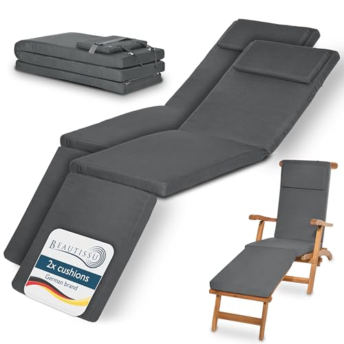 Beautissu Lot de 2 Coussin Bain de Soleil 175x45x5 cm Loftlux DC – Matelas Bain de Soleil Housse Amovible – Coussin Transat Exterieur Chaise Longue Gris Graphite