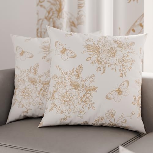 PETTI Artigiani Italiani - Lot de 2 Taies d'Oreillers 60x60 cm 100% Microfibre Hypoallergénique, Housse Oreiller Rectangulaire Motif Floral Blanc Beige, Paquet de 2, Fabriqué en Italie
