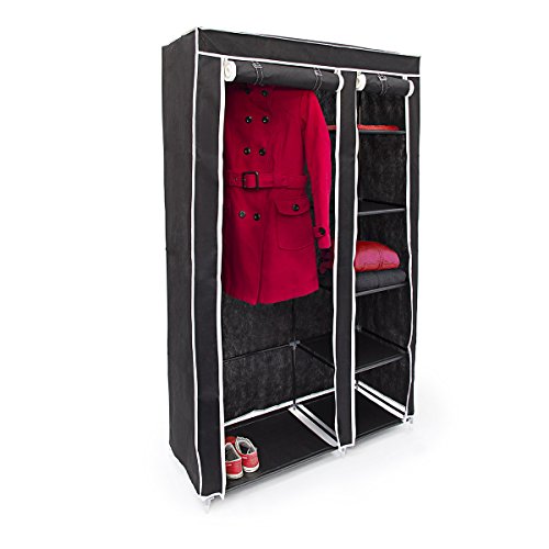 Relaxdays 10019124 Armoire pliante avec housse Penderie avec revêtement en tissu VALENTIN XL 5 compartiments et 1 tringle à vêtements avec fermeture éclair idéal pour le camping, noir