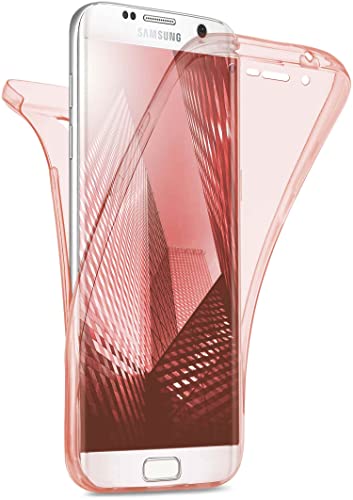 moex Coque Double en Silicone Transparent Compatible avec Samsung Galaxy S7 Edge, Housse de Protection complète des 2 côtés, Coque de téléphone Portable Avant et arrière - Rose