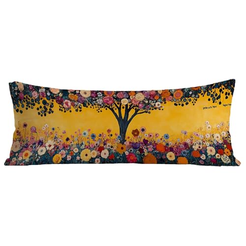 Taie de Traversin 120 cm Jaune Taie D'oreiller 40x120 cm Lin Housse Traversin, Rectangulaire Protege Oreiller Fleurs Motif, avec Fermeture Éclair Invisible Grande Housse Coussin pour Canapé Lit BZ-723
