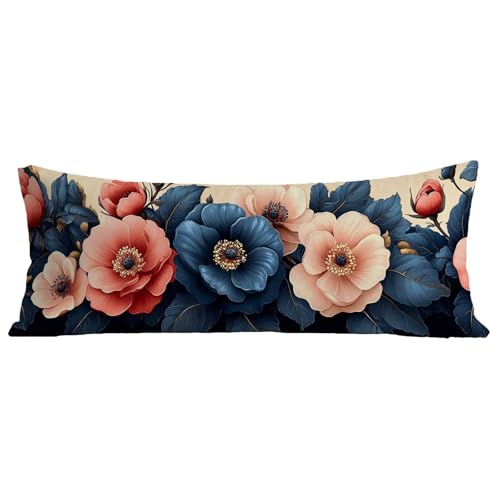 Taie de Traversin 120 cm Fleur Taie d'oreiller 40x120 cm Lin Housse Traversin, Rectangulaire Protege Oreiller Couleur, avec Fermeture Éclair Invisible Grande Housse Coussin pour Canapé Lit BZ-601