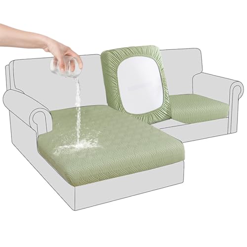 BXFUL Housse de Coussin de Canapé Extensible Imperméable pour Siège Jacquard Résistant aux Rayures et Antidérapante pour Canapé, Protection de Coussin de Siège (Grande méridienne,Menthe Verte)