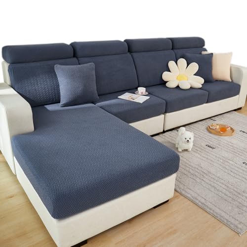 Milica Housse pour canapé d’Angle Relax avec assises Amovibles | Tissu Bután Super Extensible | Méridienne Longue à Droite | Protège-canapé Lavable et Facile à Installer | Couleur Bleu