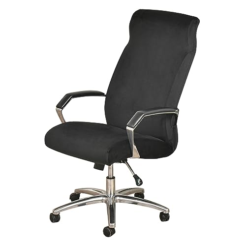 Meigeh Housse de Chaise de Bureau en Velours Housse de Chaise d'ordinateur Rotatif Extensible élasticité Housse pour Chaise de Bureau Pivotante Noir Large