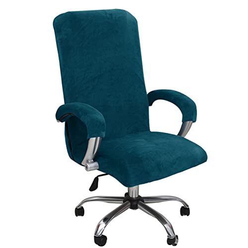 YOPOIY Velours Housse de Chaise de Bureau, Extensible Housse pour Chaise de Bureau épaisse Antidérapante Housse de Fauteuil de Bureau avec Housses de Fauteuil-Bleu-Grand