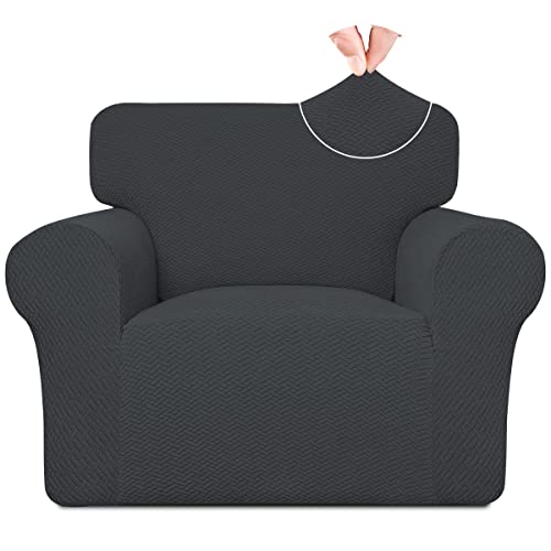 Easy-Going Housse de canapé en Jacquard Extensible pour Chaise, 1 Housse de canapé Douce, Lavable pour Enfants, Animaux domestiques (Chaise, Gris foncé)