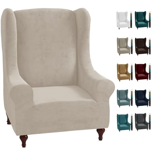 MAXIJIN Housse de Chaise en Velours Extensible, 1 pièce, Douce et élégante pour chaises à Oreilles en Velours épais avec élastique en Bas (Chaise à Oreilles, Kaki)