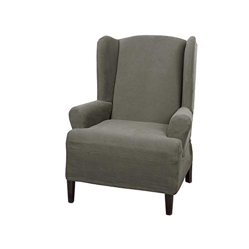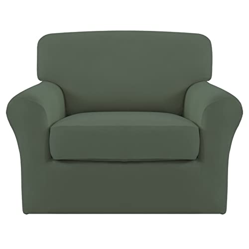 Easy-Going Lot de 2 Housses de Chaise en Microfibre Extensible – Spandex Doux et ajusté – Housse de canapé Lavable avec élastique en Bas pour Enfants, Animaux domestiques, Vert grisâtre