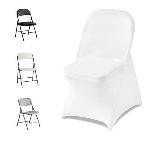 Peomeise Housse de Chaise Pliable en élasthanne Extensible pour Mariage, fête, Banquet, événement (25, Blanc)