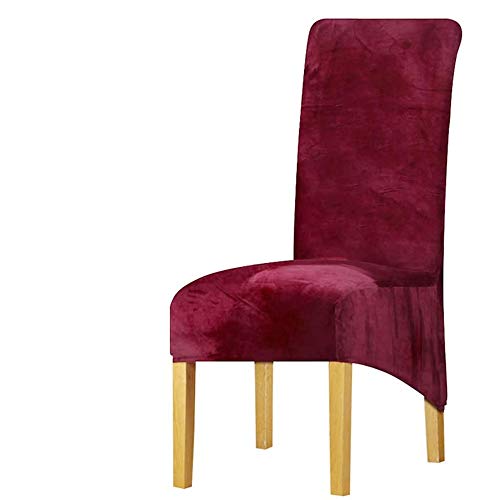 RDTRAVEL Housse de chaise en velours extensible à dossier long pour chaises de salle à manger, mariage, banquet, fête (velours renard rouge vin, lot de 1)