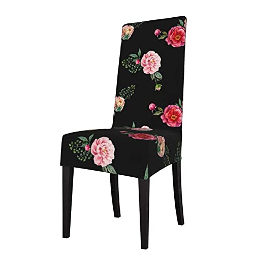 Housses de Chaise Roses Rouges Roses Vintage Floral sur Motif Noir Protecteur de siège Chaise de Salle à Manger Extensible Housse de siège pour chaises