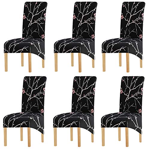KELUINA Tissu d'impression Housses de Chaise Extensibles XL pour chaises de Salle à Manger, Housse de Chaise élastique Grande 2/4/6 pièces pour Salle à Manger (Noir-2,6 Pack)