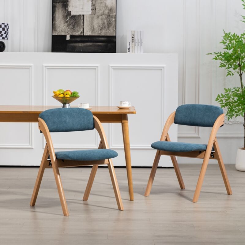Lot de 2 chaises pliantes en bois, Chaises de salle à manger avec assise rembourrée, housse amovible, adaptées pour salon, cuisine, bureau, mariage,