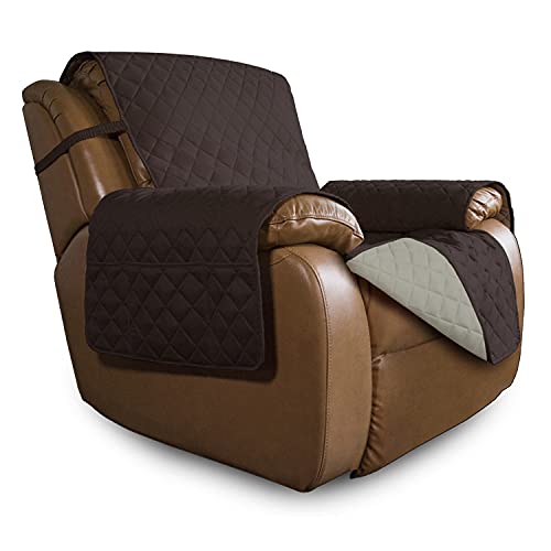 Easy-Going Housse de canapé réversible surdimensionnée et inclinable pour Salon, résistante à l'eau avec Sangles élastiques pour Animaux de Compagnie (Grand Fauteuil inclinable de 68,6 à 73,7 cm,