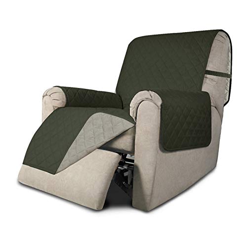 Easy-Going Housse de canapé réversible résistante à l'eau avec Sangles élastiques - pour Animaux de Compagnie, Enfants, Chiens, Chats (Fauteuil inclinable, Vert Kaki/Beige)