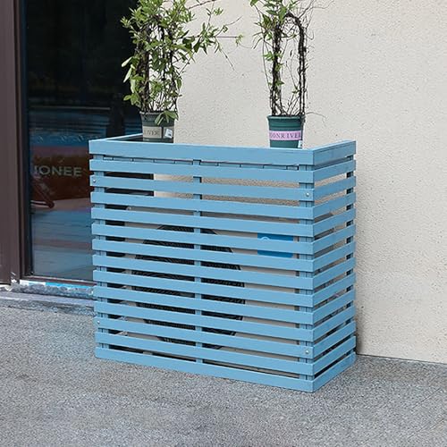 Housse de protection pour pompe à chaleur extérieure - Support de fleurs en bois - Longueurs 85, 105, 120 cm, résistante aux intempéries - Pour unités de climatisation - Bleu - 120 x 60 x 105 cm