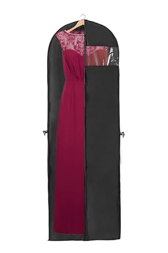 Housse Vetement Longue, 1 Pcs Housse Robe de Mariée, 180 cm Longue Housses à Vêtements pour Costume Homme et Voyage, Noir Housse Portant Vetement à Suspendre pour Penderie Vetement