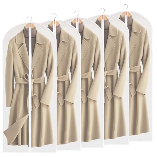 SHUOHONG 5 Pièces Housse Vetements à Suspendre à Fermeture Éclair, 60 x 140 cm Housse Costume Homme, Translucide Housse Portant Vetement, Housse Penderie pour Rangement Vetement (D)