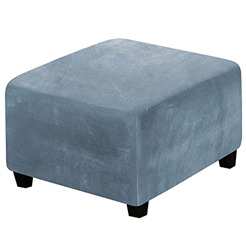 XGANGM Velours Housse de Pouf Rectangulaire Housse Ottomane S/M/L/XL Extensible Rangement Housse de Repose Pied Housse de Protection pour Repose Canapé Pieds Tabouret,Grey Blue,L