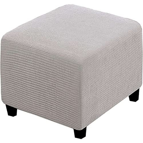 Meigeh Housse de Pouf Rectangulaire Couvre Ottoman Housse de Tabouret Housse pour Repose-Pied Housse Ottoman Extensible Gris Clair XS