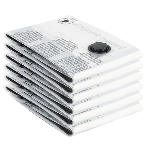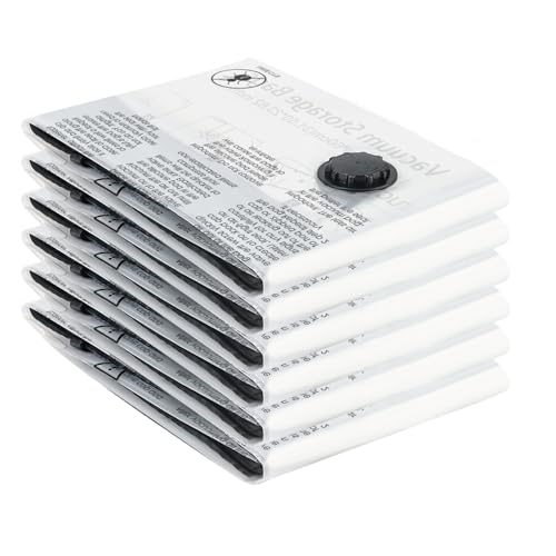 Sac Sous Vide Vetement,6pcs Sacs de Rangement Sous Vide,Sac de Compression Housse Aspirable,Sac Vetement Reutilisable,Sac de Voyage Sous Vide,Rangement pour Matelas,Literie,Oreillers