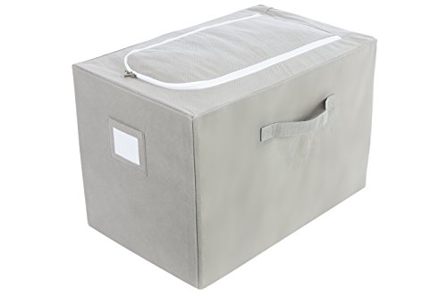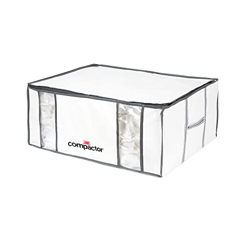 Compactor – Housse de rangement pour couette et vêtements zippée avec poignées, coloris blanc et liseré gris, rangement placards