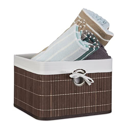 Relaxdays Corbeille Panier de rangement Housse amovible poignée Boîte de stockage étagère armoire H x l x P 20 x 31 x 31 cm- marron