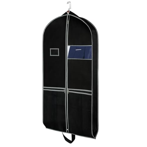 Zilink Sac à vêtements pour voyage de 109,2 cm avec poches en maille respirante, housse de rangement avec porte-cartes en PVC, noir