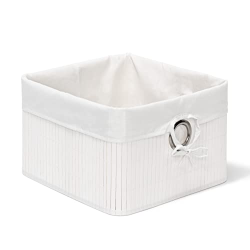 Relaxdays Corbeille Panier de rangement Housse amovible poignée Boîte de stockage étagère armoire H x l x P 20 x 31 x 31 cm- blanc