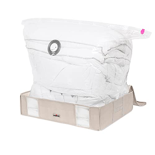 Compactor - Housse de rangement sous vide - Taille XXL très grande capacité - Coloris beige - Compression couettes oreillers vêtements - Rangement armoire