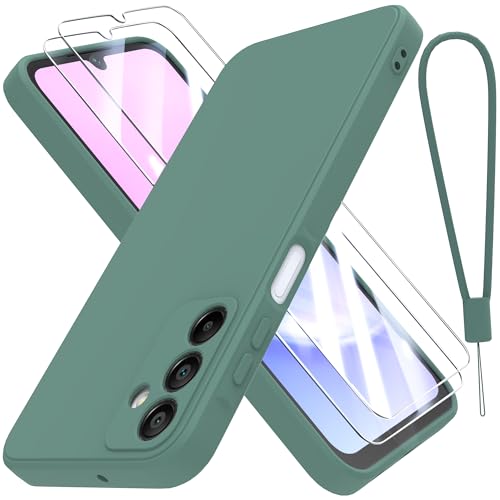 THIYUFUNS Coque pour Samsung Galaxy A15 4G / 5G (6.5") avec 2 Verre trempé,Silicone Liquide Intérieur Microfibre Etui de Protection Contre Les Chutes Housse pour Samsung Galaxy A15 - Vert foncé