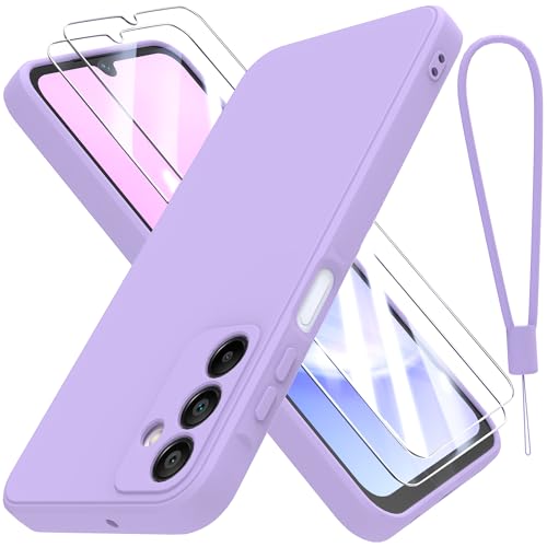 THIYUFUNS Coque pour Samsung Galaxy A15 4G / 5G avec 2 Verre trempé,Silicone Liquide Intérieur Microfibre Etui de Protection Contre Les Chutes Antichoc Housse pour Samsung Galaxy A15 (6.5") - Violet