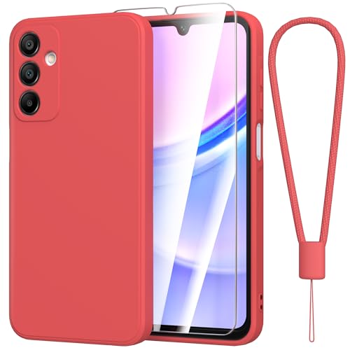 Fyriswho Coque Compatible avec pour Samsung Galaxy A15 4G / 5G + 1 Pièces Verre Trempé, Souple Silicone Mince Étui Protection Anti-Rayures Housse pour Samsung Galaxy A15 4G / 5G (6.5") - Rouge