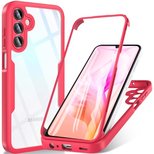 Phoona 360 degrés Coque pour Samsung Galaxy A15 4G/5G avec Transparent Protection d'écran, TPU Silicone Antichoc écran Coque, Anti-Rayures Portable Intégrale Étui Housse pour Samsung A15 4G/5G, Rouge